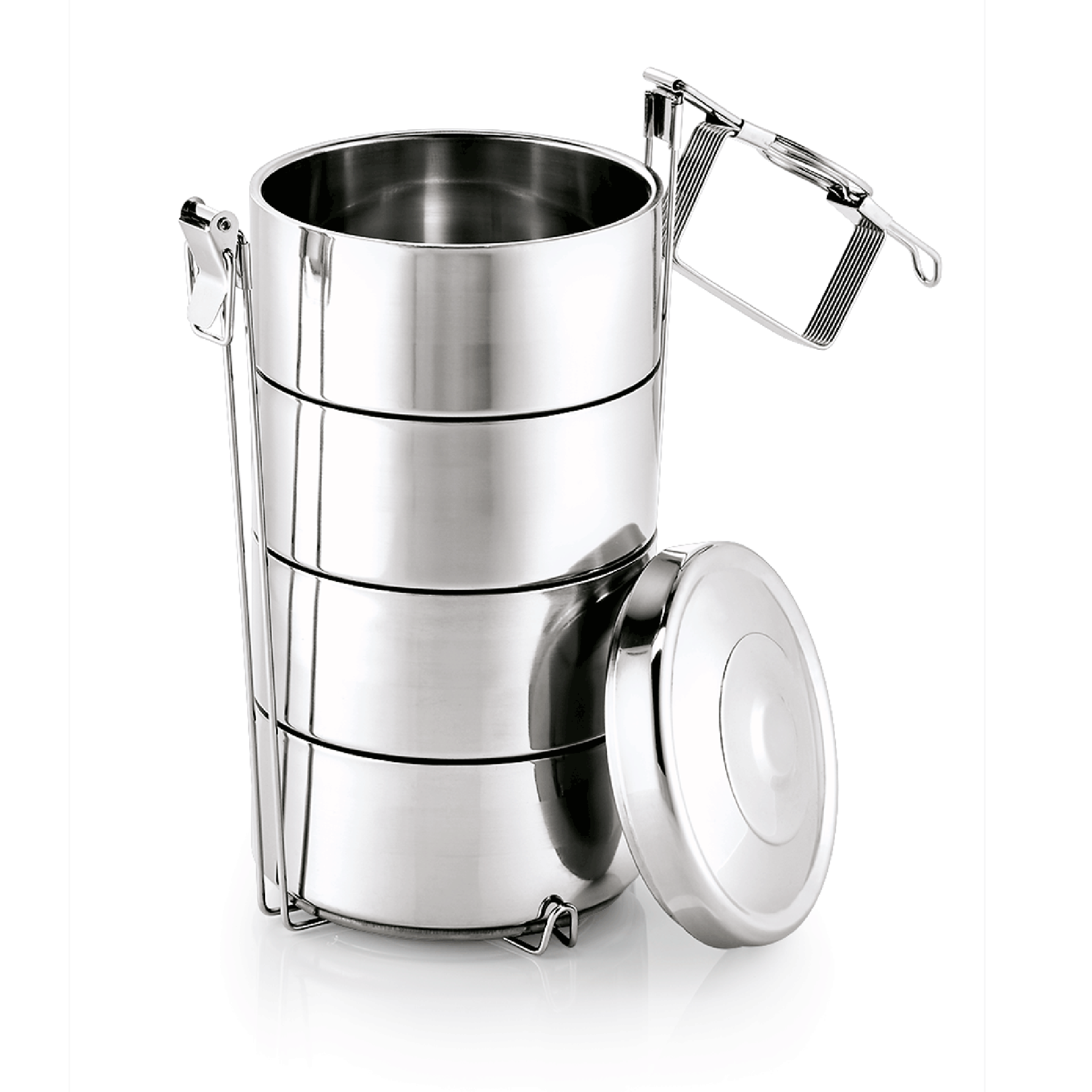Produktinformationen "Thermoetagentransportbehälter - Ø 16 cm - Edelstahl - mit Tragegriff, oberer Speiseeinsatz mit separ"