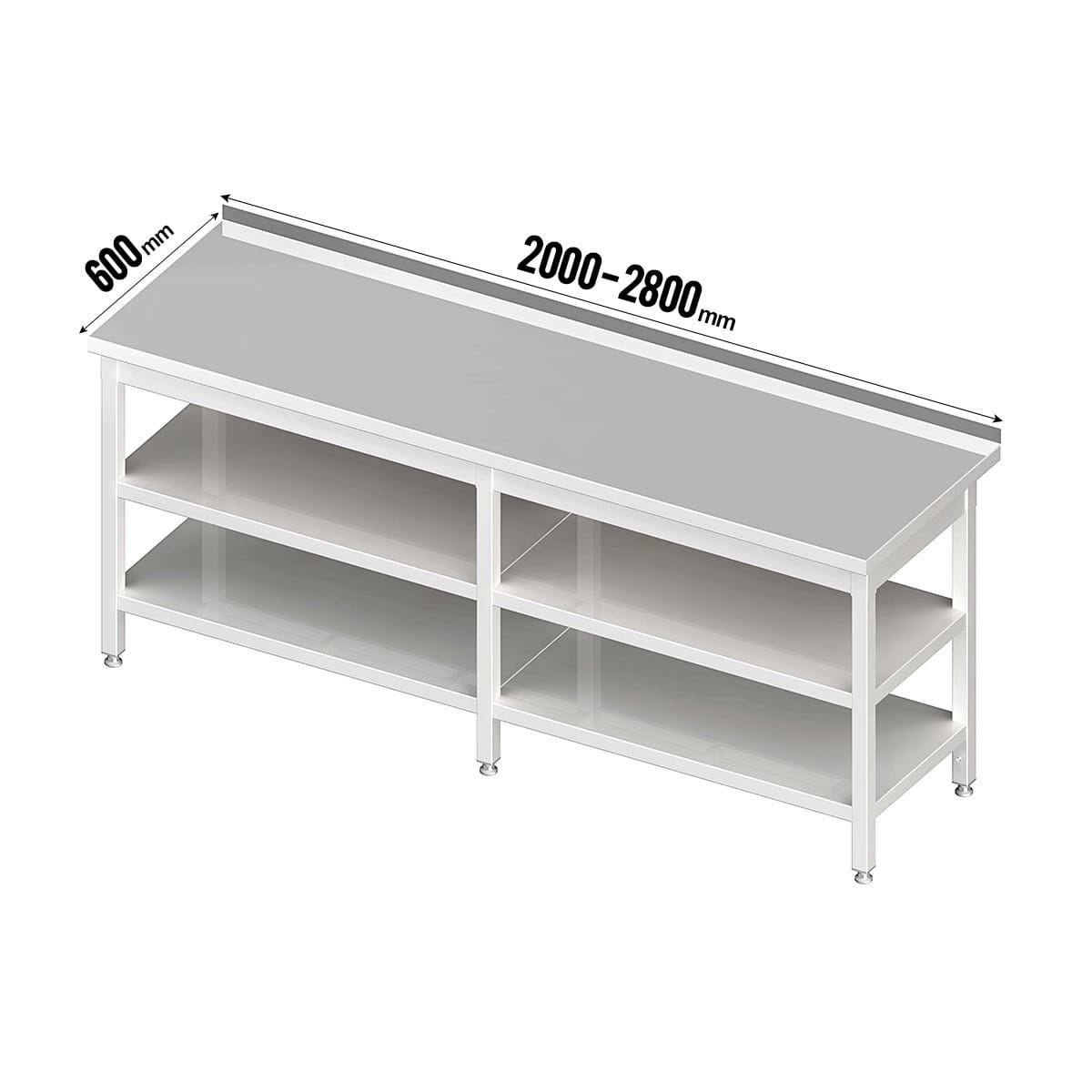 Produktinformationen "Edelstahl Arbeitstisch mit Aufkantung, Grundboden und Zwischenboden, verschiedene Maße"