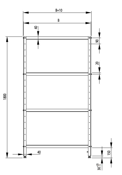 - Winkelprofil 40 x 40 mm Regalbeine, Materialstärke: mindestens 1,5 mm
