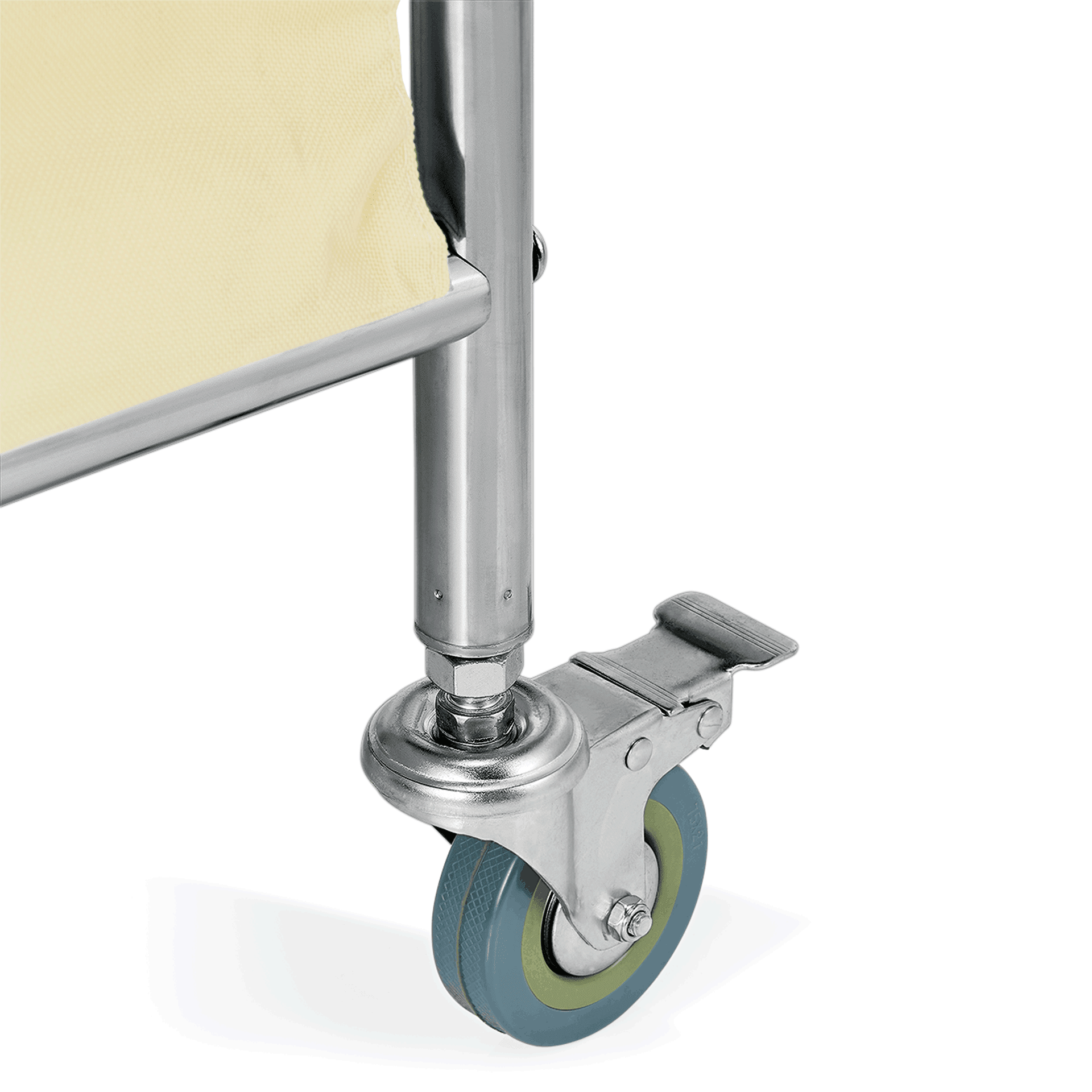 Produktinformationen "Wäschewagen - 9 kg - Edelstahl - 4 schwenkbare Rollen Ø 7,5 cm, davon 2 mit Feststeller, Rohrrahmen"