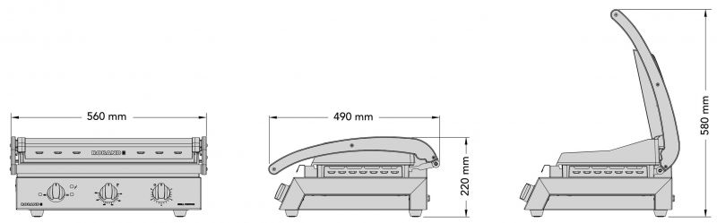 - Ausbalancierte obere Grillplatte und bogenförmiger Griff für komfortablere Bedienung der Grillstation