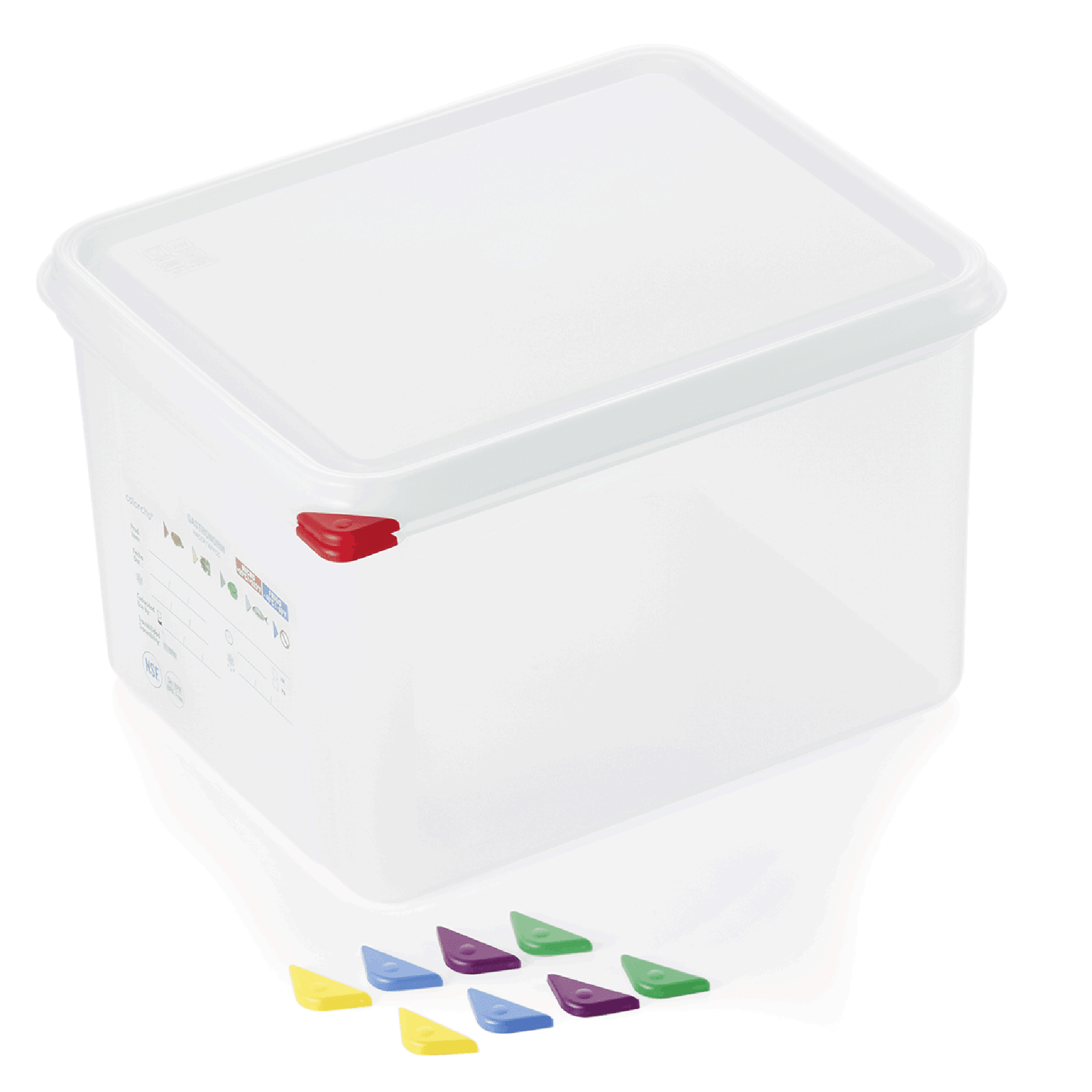 Behälter können mit HACCP-Clips (nicht enthalten) farbig markiert werden