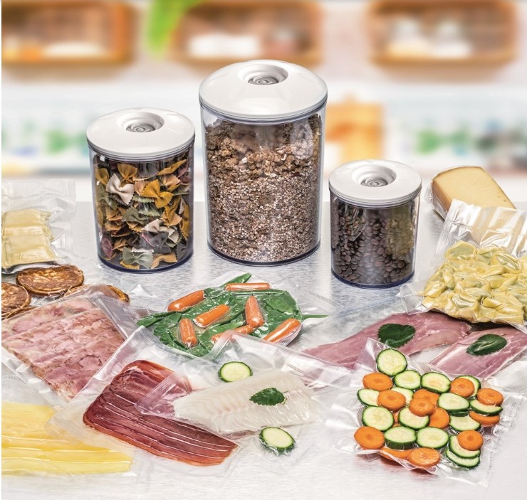 Vakuumierbeutel - Lebensmittel bis zu 5 x länger frisch halten - Die Verwendung von unseren Folienbeutel garantiert eine einwandfreie und schnelle Vakuumierung mit den Vakuumiergeräten. Diese hochwertigen Vakuumierfolien sind in Beutel- oder Rollenform in verschiedenen Größen erhältlich. Die patentierte 2-Schicht Qualität sowie die spezielle Riffelung sorgen für beste Vakuumier-Eigenschaften. In den Beuteln/Rollen lassen sich Lebensmittel platzsparend und sicher vor Gefrierbrand im Tiefkühler lagern und anschließend in der Mikrowelle erwärmen. Sie sind hitzebeständig bis 100°C, so dass darin Lebensmittel im heißen Wasserbad erhitzt werden können. Selbst für das immer populärer werdende Sous Vide Garen (Vakuumgaren bei Niedrigtemperatur) sind diese speziellen Beutel und Rollen bestens geeignet. Die robuste Qualität macht eine umweltfreundliche Mehrfachverwendung möglich: einfach gut ausspülen und immer wieder verwenden. Neben Lebensmitteln lassen sich in den Folien aber auch andere Dinge geschützt lagern: Vakuum schützt Schmuck vor dem Anlaufen, bewahrt empfindliche Dinge (z. B. Verbandsmaterial oder Camping-Vorräte) vor Feuchtigkeit und Schmutz. Bestes Material für optimale Vakuumier-Ergebnisse!