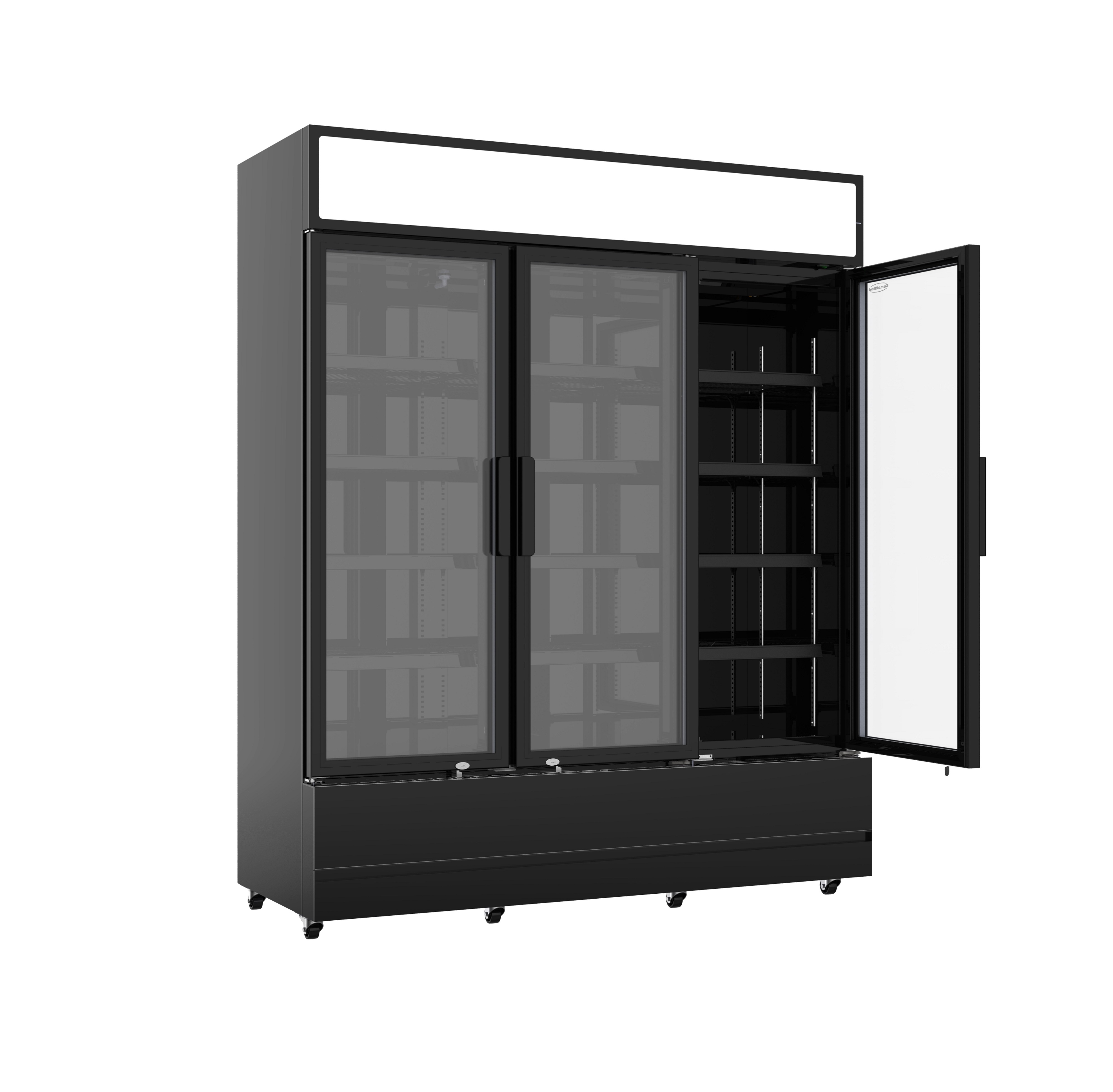 Getränke-Kühlschrank, +1 bis +10°C, 1065 Liter, 3 Türen, rollbar, Umluftkühlung, schwarz
