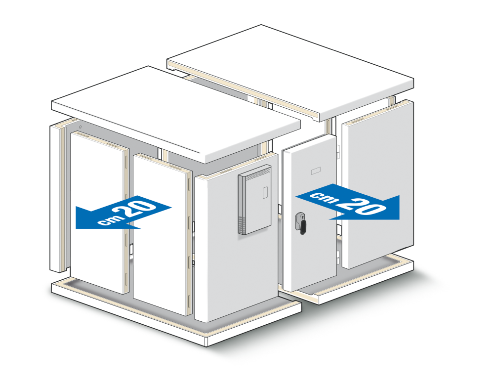 Produktinformationen "Kühlzelle, Volumen 7,5 m³, Schloss mit Paniksicherung, Boden mit rutschfestem PVC-Film, 80 mm Isolie"