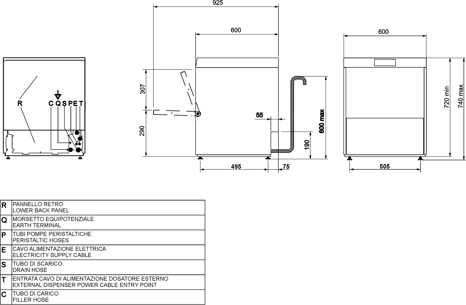 - die Reinigungsmittel- und Klarspülerdosiererpumpen sind selbstansaugende Schlauchpumpen, die keinerlei zusätzliche Ausrüstung benötigen und somit sehr unanfällig für Verschleiß sind.
